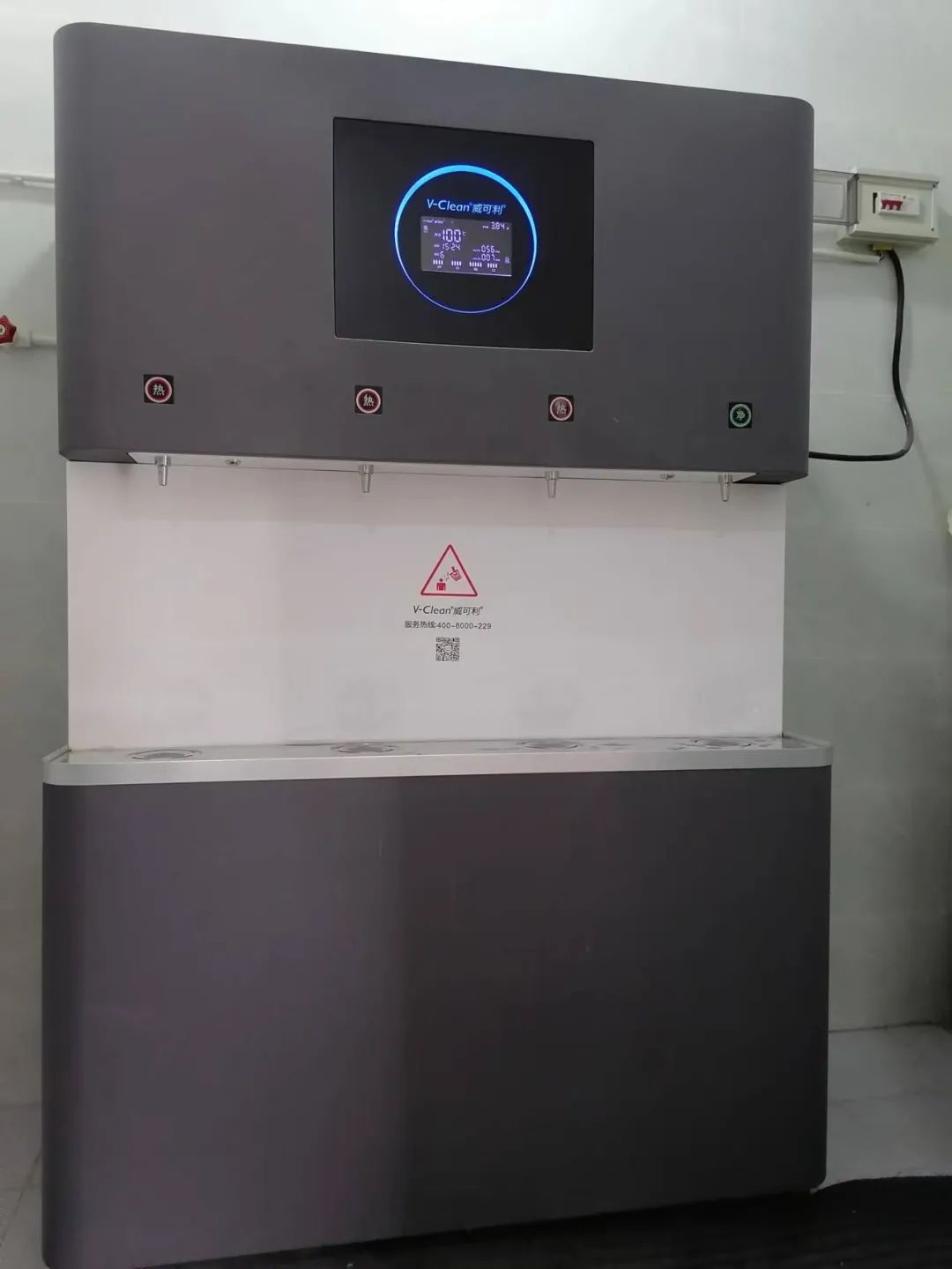 這款威可利直飲機(jī)有著龐大的水箱,輕松解決學(xué)校飲水需求大的問(wèn)題。它的外觀簡(jiǎn)潔、大方。一排四個(gè)龍頭,可供4人同時(shí)取水;出水量穩(wěn)定,拒絕擁堵。而且只要輕輕觸碰就有熱水與直飲水兩種選擇。