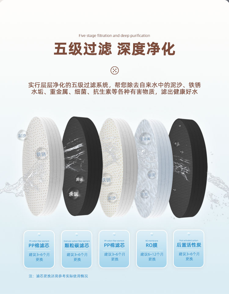 過濾系統(tǒng):五級過濾(RO400+6G壓力桶)