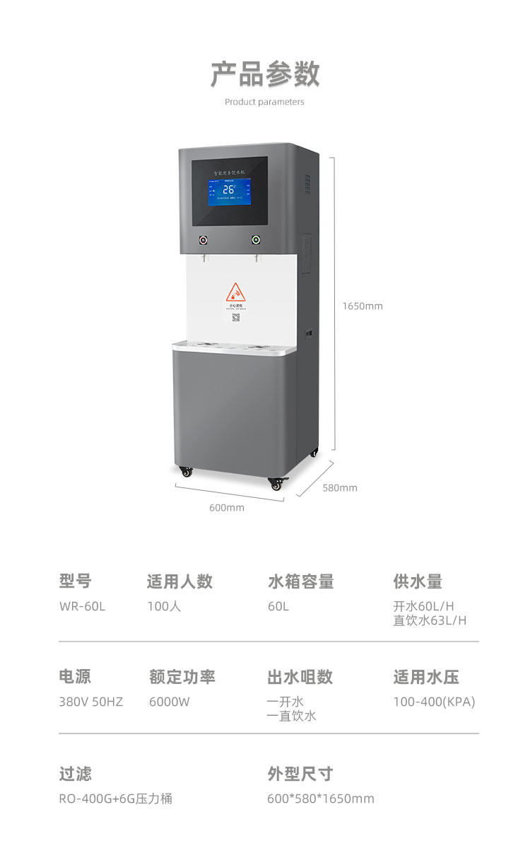 過濾系統(tǒng):五級過濾(RO400+6G壓力桶)