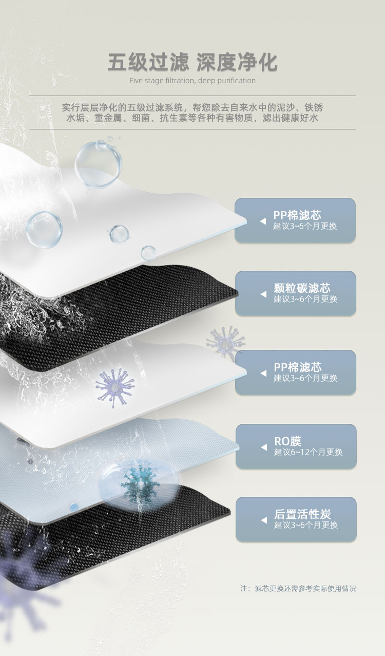 過濾系統(tǒng):五級過濾(RO400+11G壓力桶)